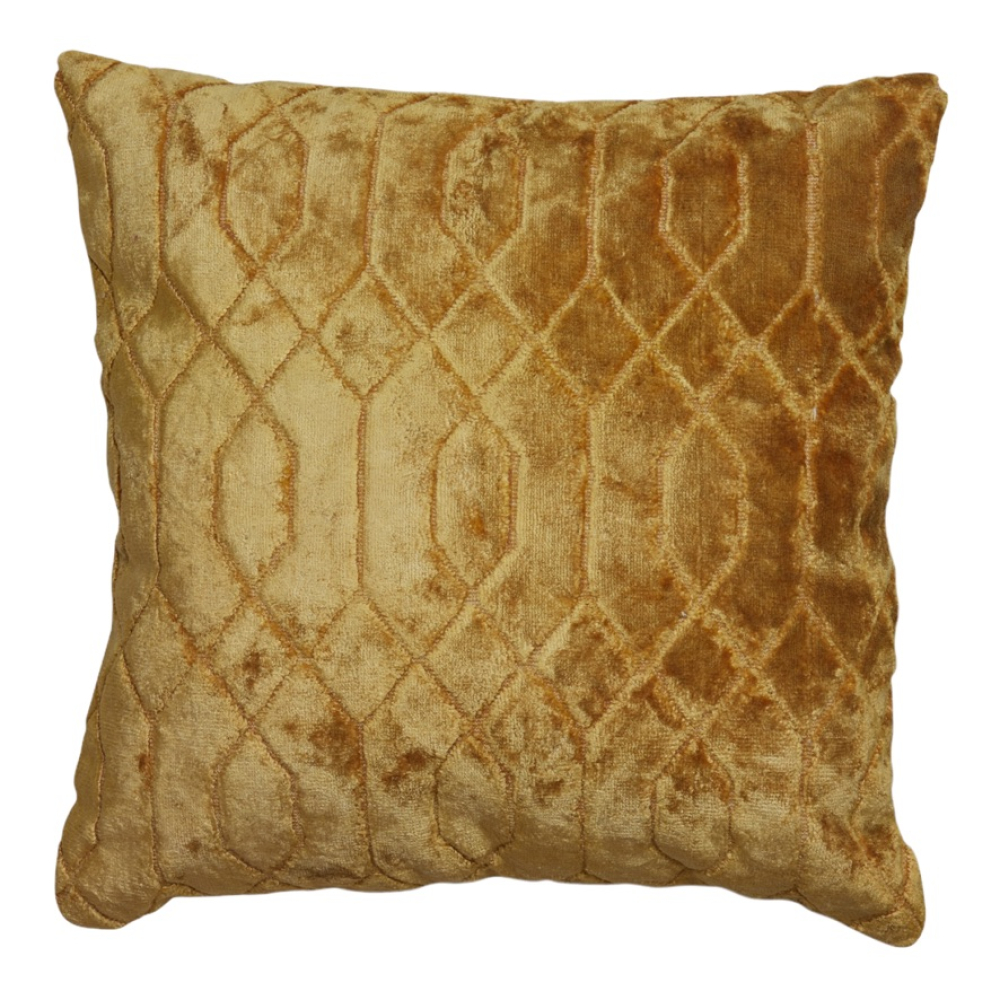 Stijlvol zacht kussen in okergele kleur met een chique design.