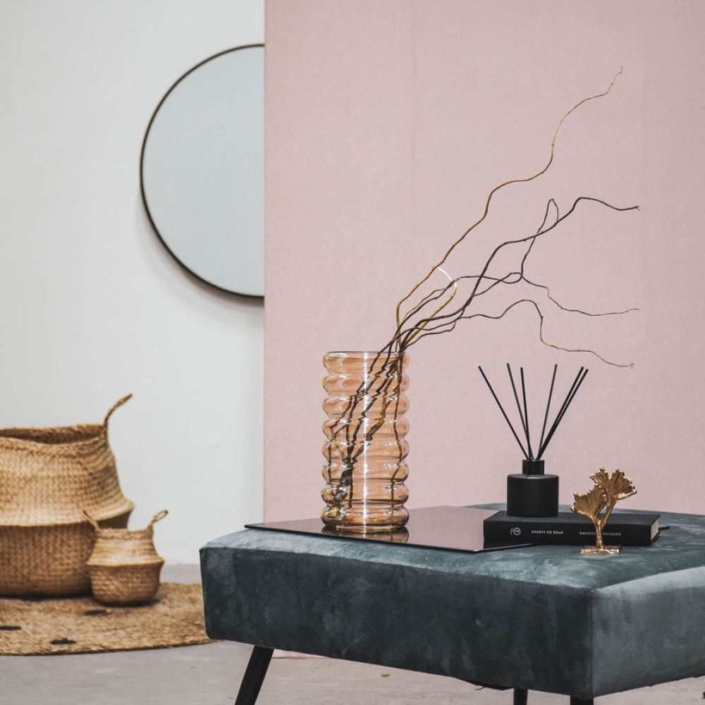 Styling Tip: Ga los en combineer dit glazen bobbeltjes vaasje met vaasjes in verschillende hoogten.