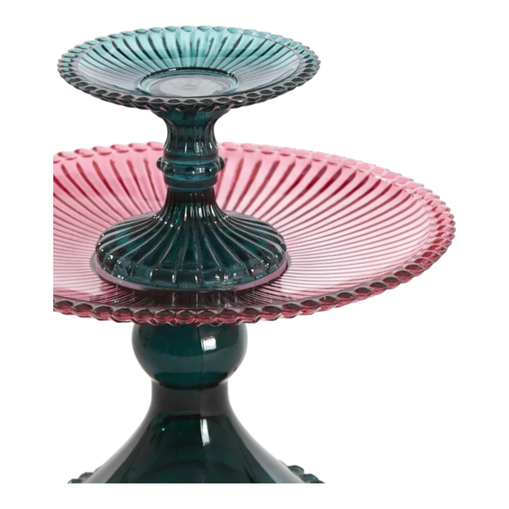 Een feestje voor op tafel is deze 2 laagste etagere.De mooie colorblock combinatie van groen met roze kleuren.