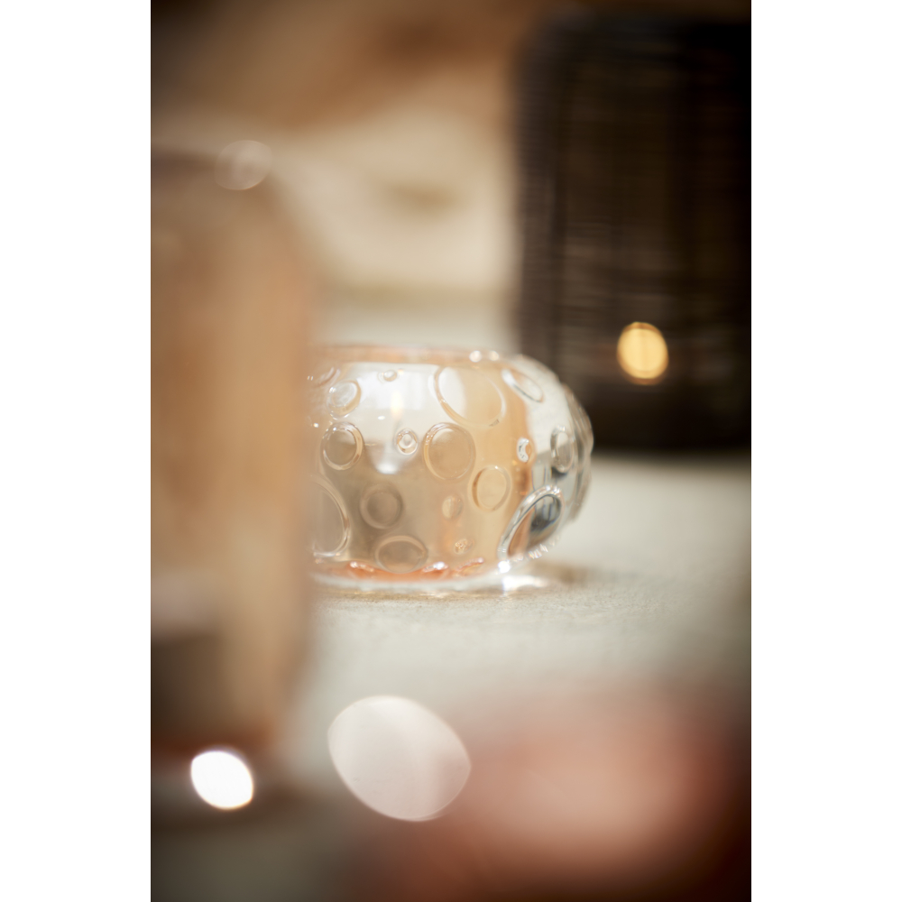 Het Finley theelicht heeft een ronde vorm die zacht en subtiel licht verspreidt wanneer een kaarsje erin wordt geplaatst.