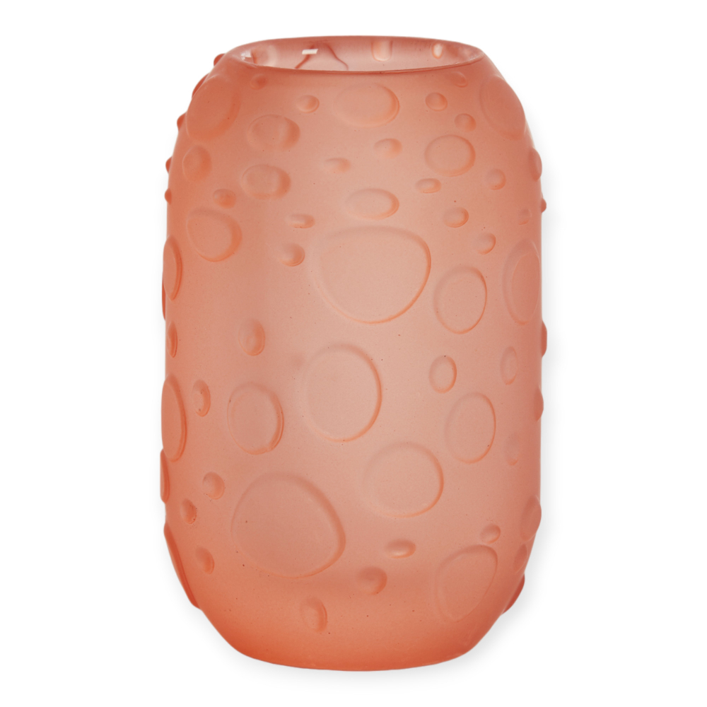 De lichtroze matte kwaliteit van het glas laten het kaarslicht op een prachtige manier doorschijnen, waardoor een kalmerende ambiance ontstaat.