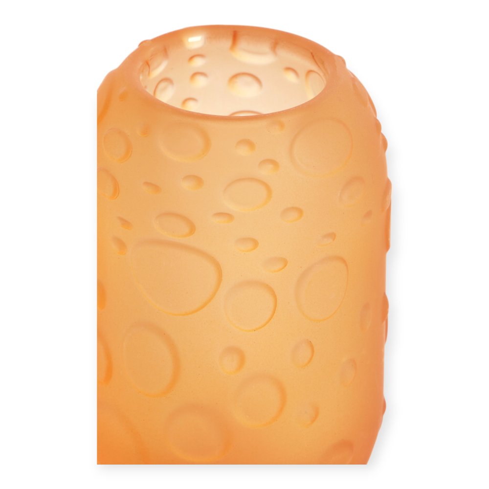 De perzik kleur van het glas laten het kaarslicht op een prachtige manier doorschijnen, waardoor een kalmerende ambiance ontstaat.