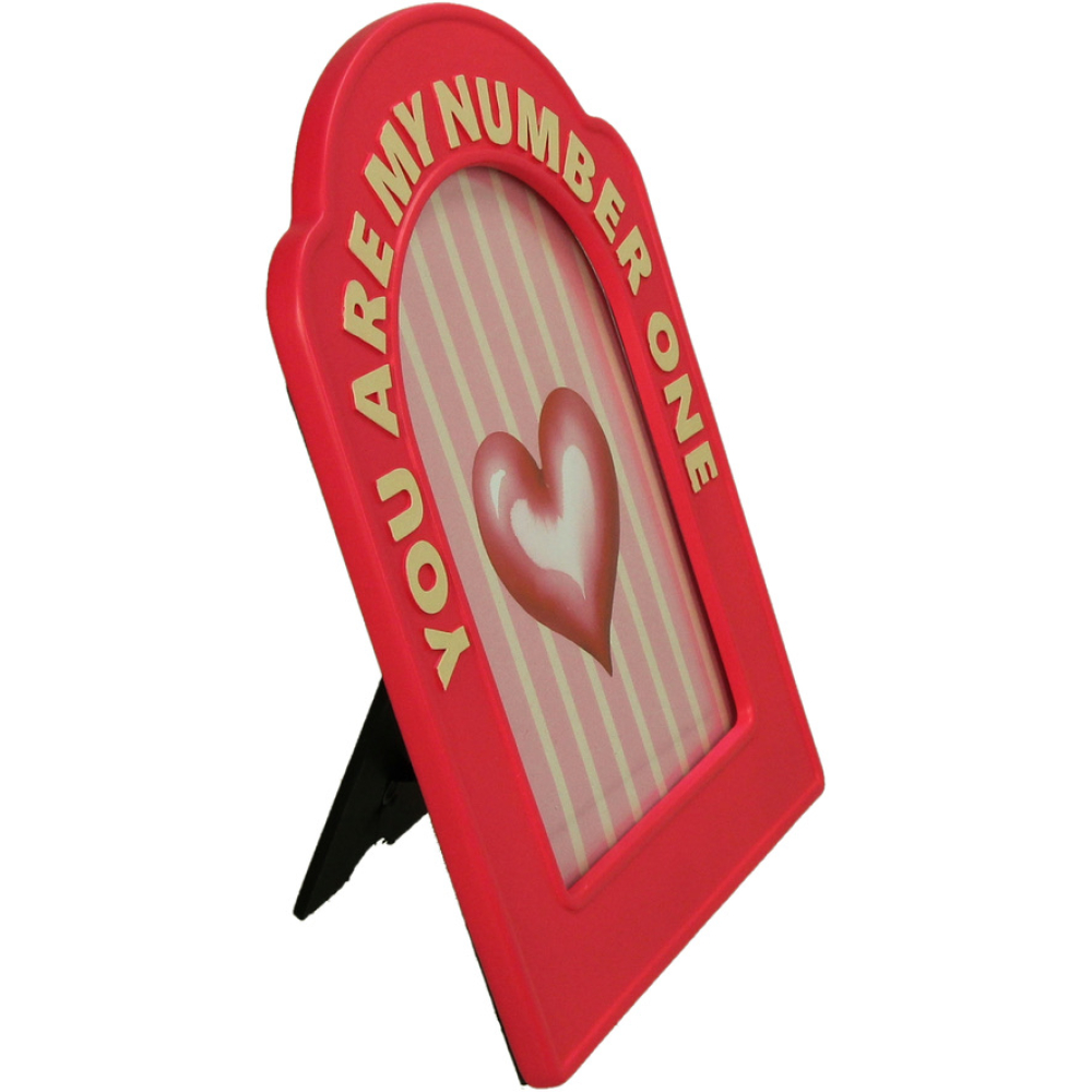 You are my number one fotolijst. Wil je extra boodschap aan jou herinnering met iemand samen toevoegen? De Fotolijst in rode kleur met zachtgeld romantische tekst is dan een opvallende en charmante keuze die elke foto net dat beetje extra liefde geeft. Deze unieke lijst in een zachte roze kleur heeft een golvende, bijna luchtige structuur die doet denken aan de vorm van een croissant – een originele twist voor wie houdt van iets anders dan standaard. Met zijn vrolijke uitstraling en subtiele glans is deze fotolijst ideaal om je favoriete momenten stijlvol in de spotlight te zetten. Perfect als eyecatcher op een bureau, in een open kast of op een nachttafeltje. Het compacte formaat van 13x18 cm vind je altijd wel een plekje voor.