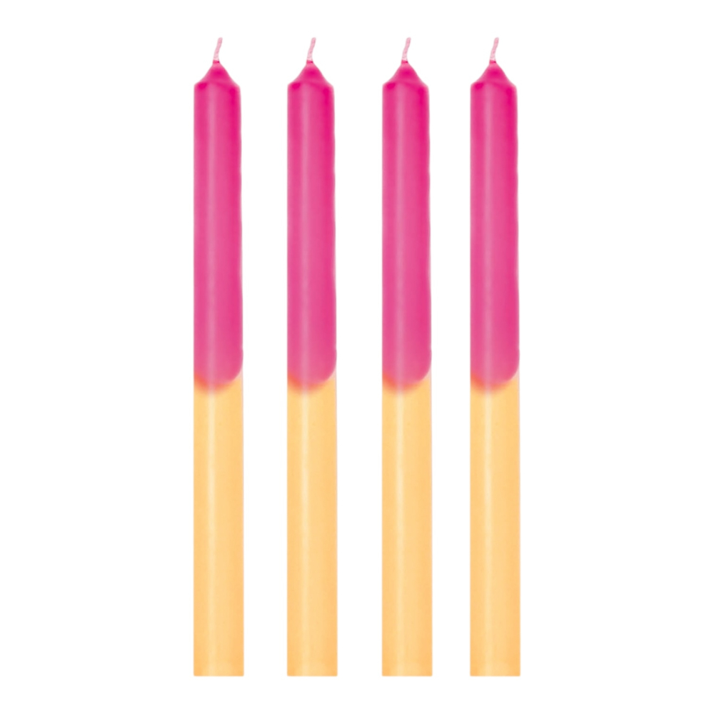 Deze Dipdye dinerkaarsen zijn meer dan alleen een bron van licht – ze zijn een expressie van kleur en speelsheid. De combinatie van roze en geel colorblock zorgt voor een vrolijk, uitnodigend gevoel en is perfect voor vrolijke tafeldecoraties of als blikvanger op een zomerse borrelavond. Ze passen mooi bij zowel pasteltinten als felle kleuren, en zorgen voor balans in zowel minimalistische als kleurrijke interieurs. Ook leuk: mix en match ze met andere Dipdye varianten voor een nonchalant, creatief effect. Zelfs wanneer ze niet branden, voegen ze sfeer toe. Perfect voor wie houdt van kleur in huis, en iets origineels wil.
