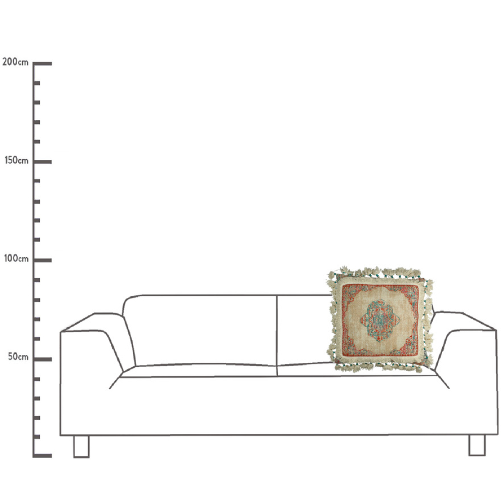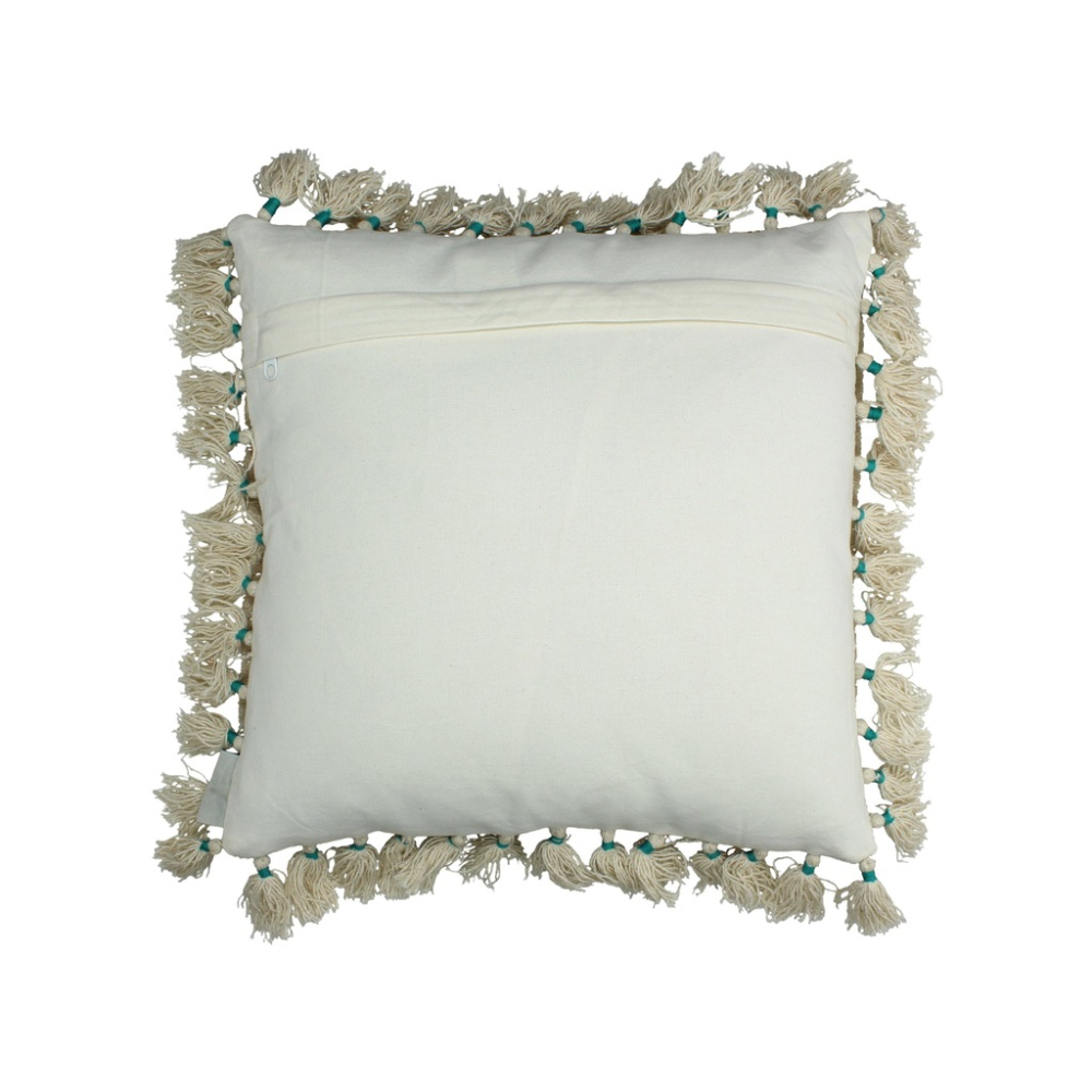 Speels kussen in frisse kleuren zal stralen op iedere bank of stoel. Mediterraanse stijl met borduursels, kwastjes en franjes. Mix en Match met onze andere kussens uit ons assortiment.