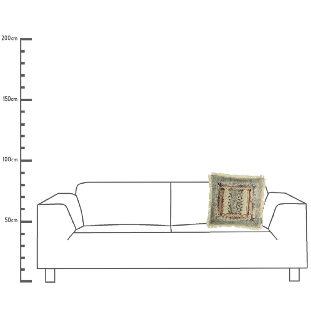 Speels kussen in frisse kleuren zal stralen op iedere bank of stoel. Mediterraanse stijl met borduursels, kwastjes en franjes. Mix en Match met onze andere kussens uit ons assortiment.