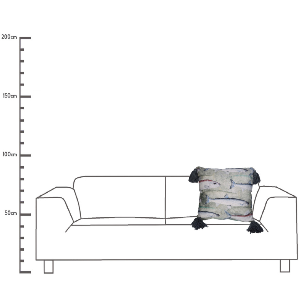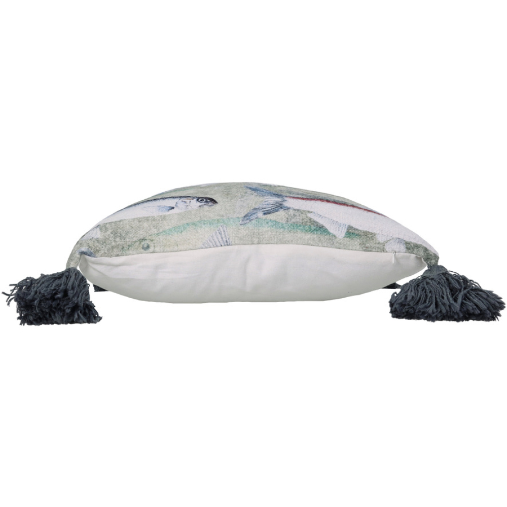 Kussen Vissen Grijs met kwastjes 45x45cm Kersten
