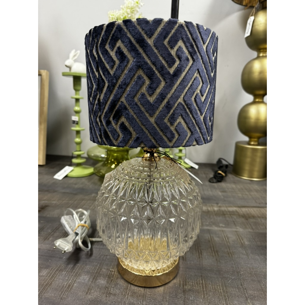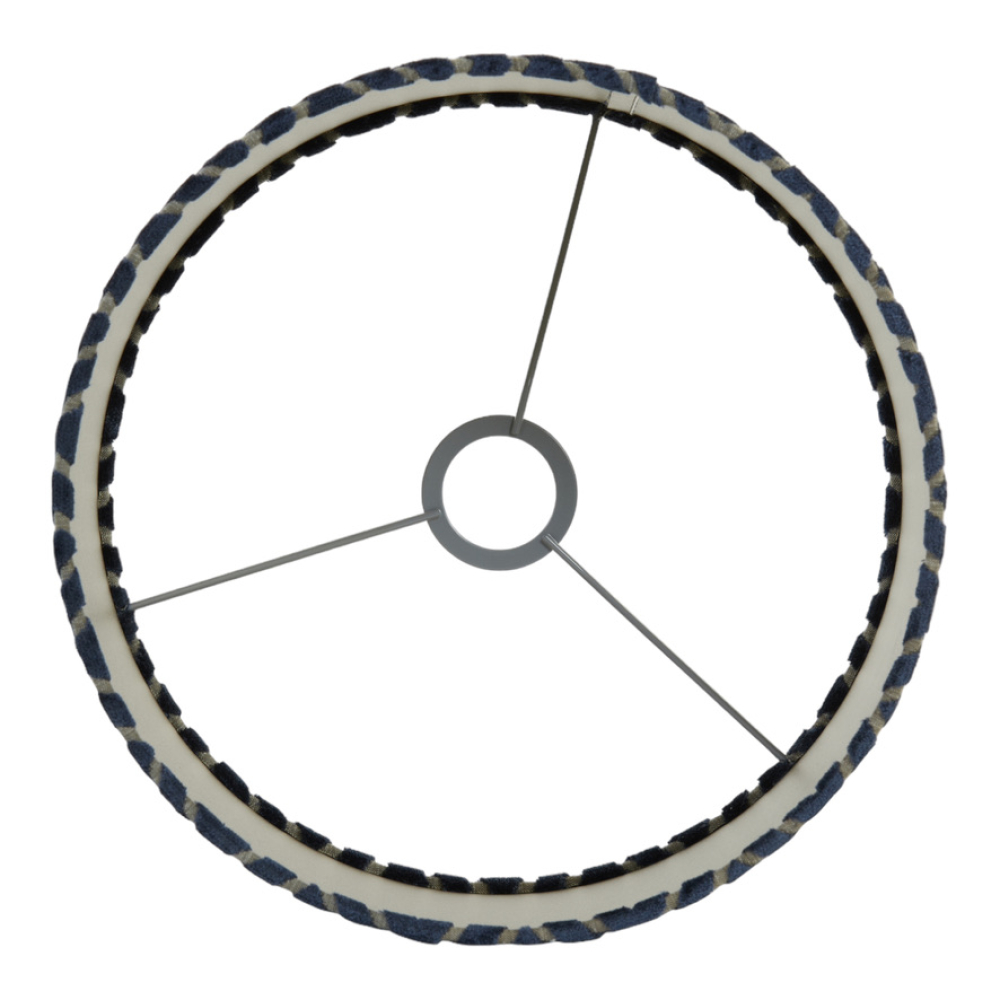 Een chique lampenkap met een speelse print.De Maze Lampenkap in donkerblauw met taupe kleur is gemaakt van een zachte velvet stof.