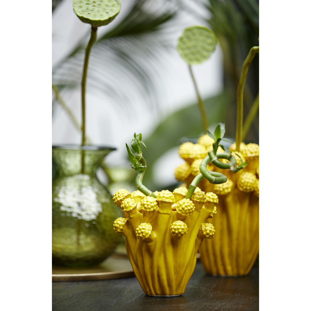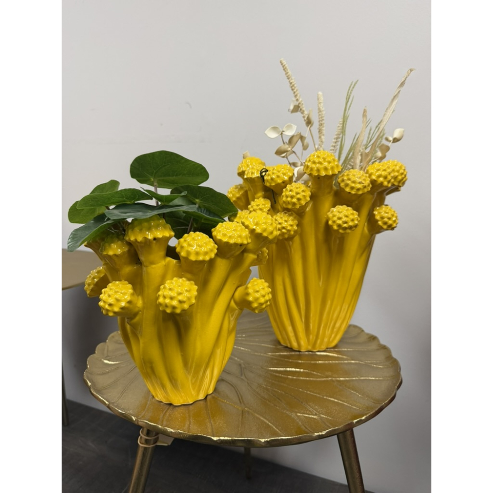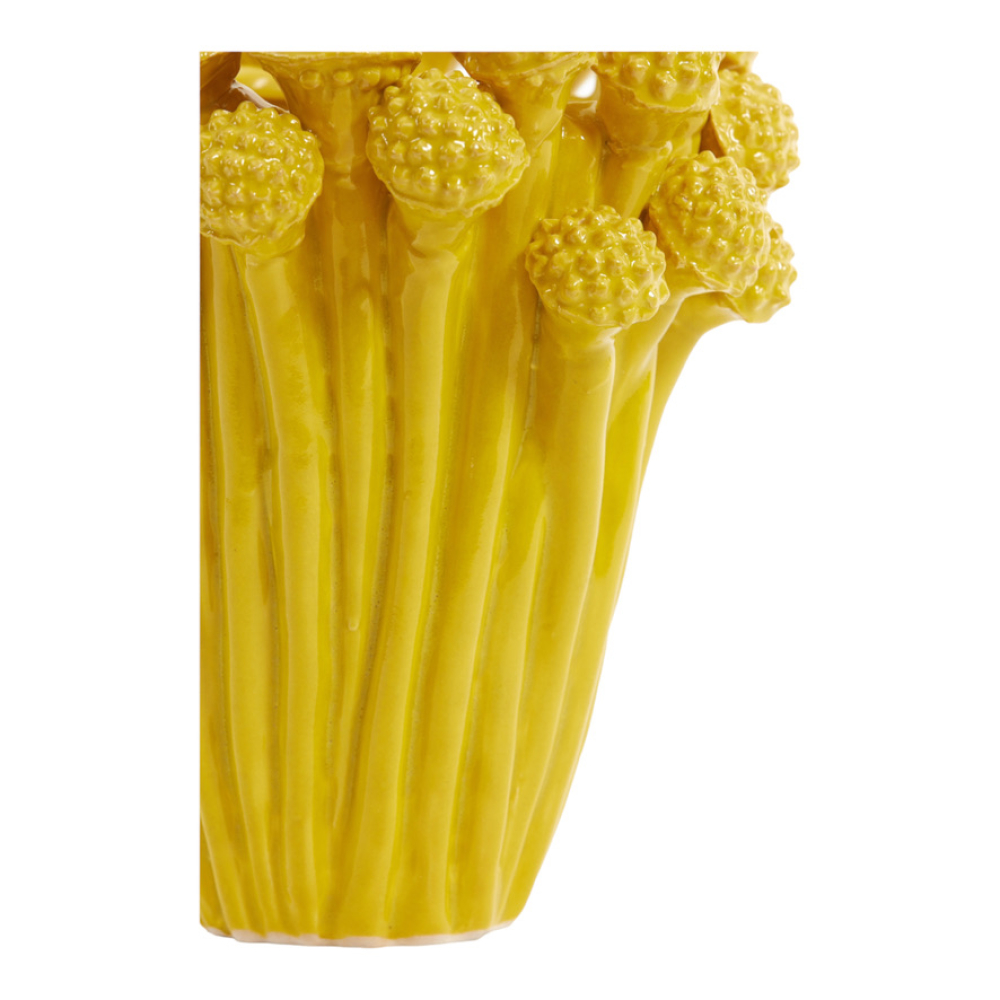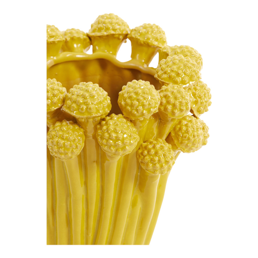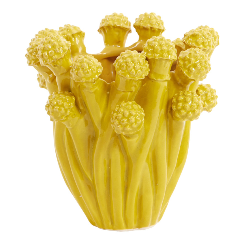 Deze vaas is gemaakt van Keramiek en heeft een gele kleur.