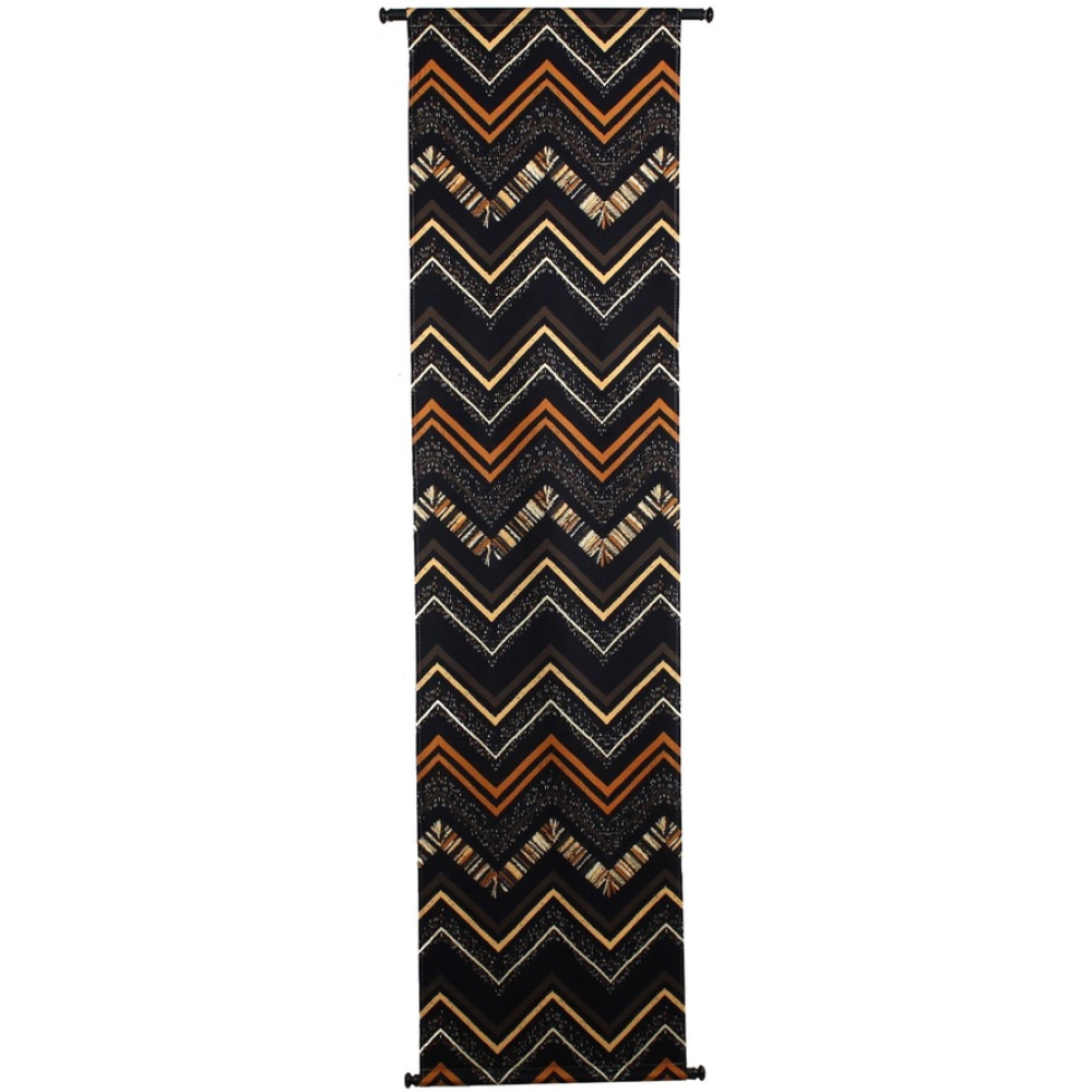 Ben je op zoek naar een stijlvol detail dat jouw interieur net dat beetje extra karakter geeft? Dan is dit meerkleurige wanddoek zwart 56x3x178cm een perfecte keuze. Met zijn langwerpige vorm en diepe zwarte kleur met gekleurd motief straalt dit wanddoek eenvoud en elegantie uit. Dankzij het slanke ontwerp past het ideaal op plekken waar je met standaard wanddecoratie vaak moeilijk uitkomt, zoals smalle muren of tussenruimtes. Dit maakt het niet alleen een decoratief item, maar ook een slimme oplossing om je interieur compleet te maken. De moderne print geeft rust en balans, terwijl de lengte een speels en tegelijkertijd chic effect toevoegt. De combinatie van oranje terra, bruin en geel allemaal warme kleuren geeft een fijne huiselijke sfeer op jouw muur.