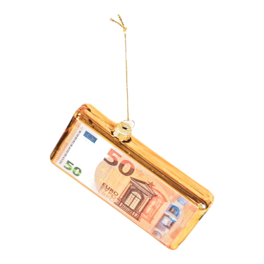 Voor alle GOLD-DIGGERS, luxepoezen en geldwolven dit ornament biljet precies wat jij zoekt. In de vorm van een geld‑biljet uitgevoerd in decoratief design, voegt dit item een leuke twist toe aan je ruimte. Maak van jouw kerstboom een geldboom! Ook leuk om cadeau te geven met een kleine knipoog.