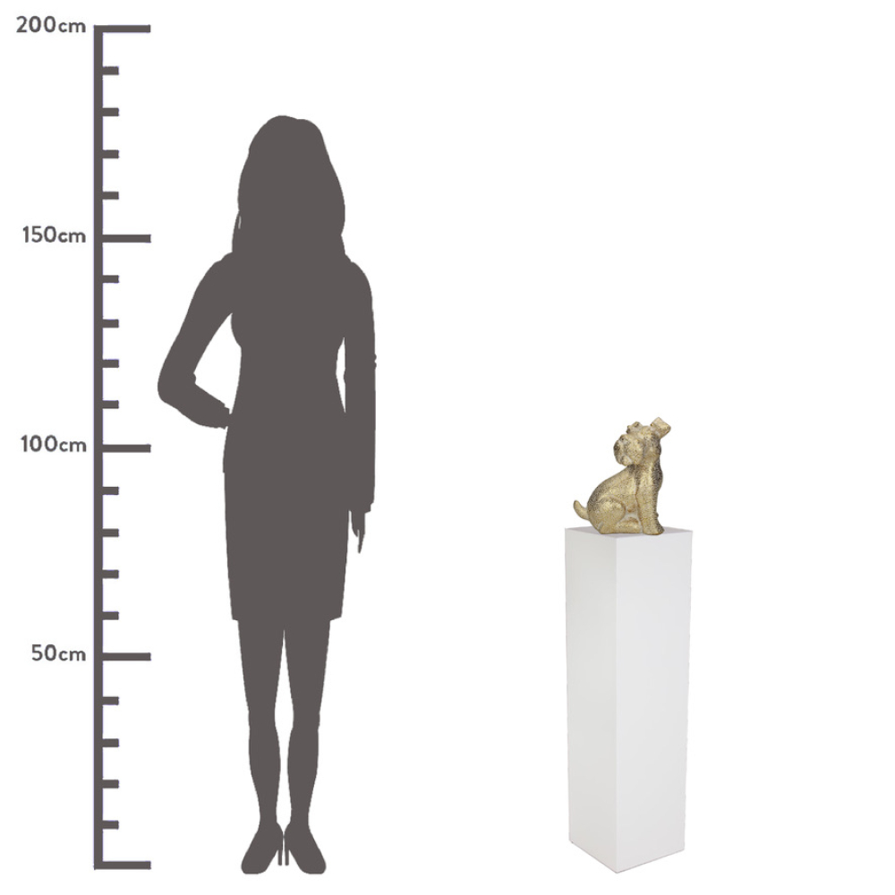 Ze gaat zitten, kijkt je trouw aan en kwispelt af en toe.