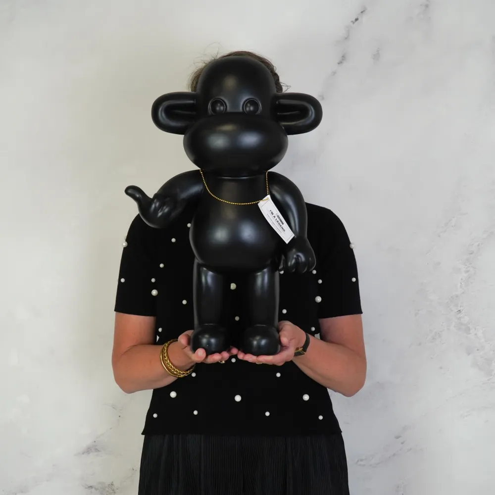 Deze brutale aap is ideaal voor ruimtes waar je echt een statement wilt maken. Door het grote formaat komt het beeld perfect tot zijn recht op de vloer, naast een dressoir, in een open hoek van de woonkamer of in een ruime hal. Ook in een kantoor, showroom of ontvangstruimte zorgt dit decoratieve object voor een sterke en stijlvolle eerste indruk. De zwarte kleur maakt het ornament veelzijdig en makkelijk te combineren met verschillende materialen zoals hout, metaal of glas. Het beeld kan solitair worden geplaatst voor een minimalistische look, maar werkt ook goed in combinatie met andere grote woonaccessoires voor een gelaagd interieur. Dankzij de krachtige houding en het opvallende design blijft het ornament vanuit elke hoek interessant om naar te kijken. Het brengt balans tussen speels en stoer en geeft elke ruimte een ontspannen, eigentijdse sfeer. Dit maakt het beeld bijzonder geschikt voor mensen die hun interieur bewust willen stylen met objecten die karakter en uitstraling hebben, zonder dat het geheel druk aanvoelt.