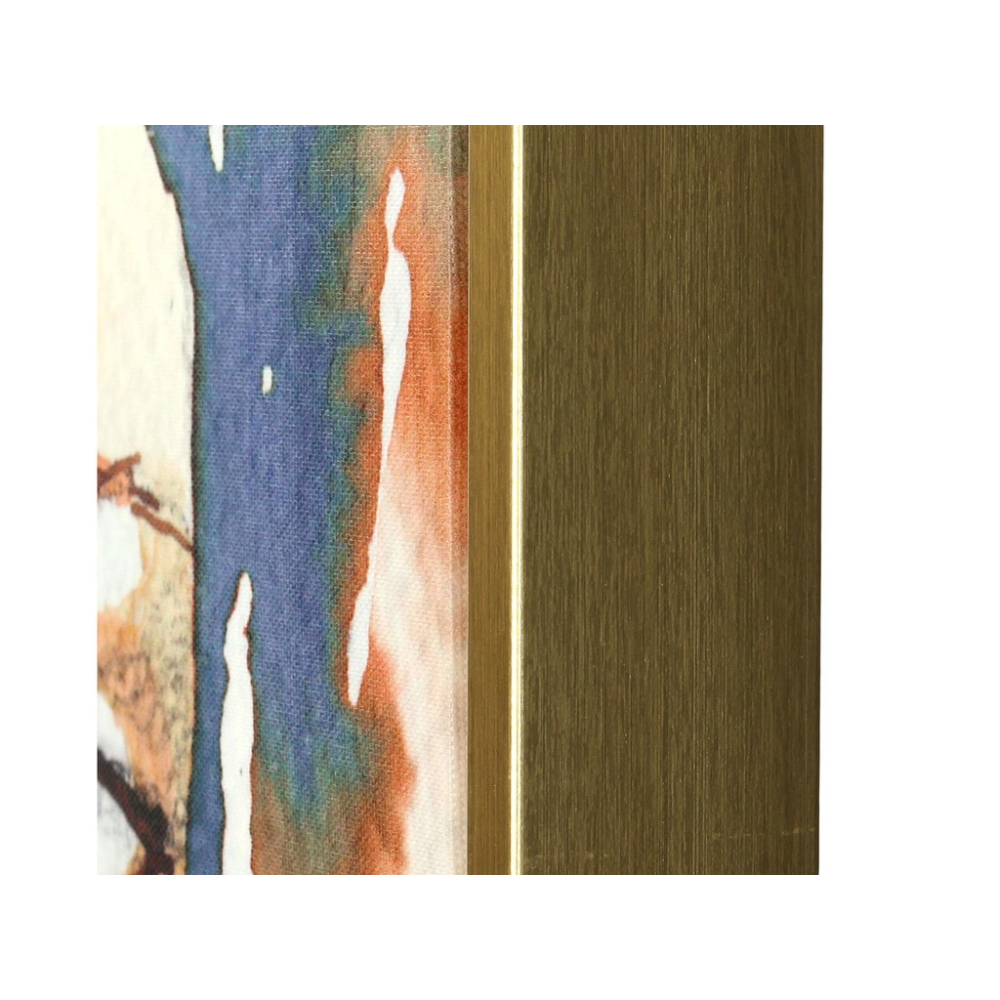 Deze prachtige dame weet wat ze wil. Een mooi overzichtelijk plekje in jouw interieur. De mooie kleuren zijn gemakkelijk te combineren en de gouden lijst maakt het geheel compleet.