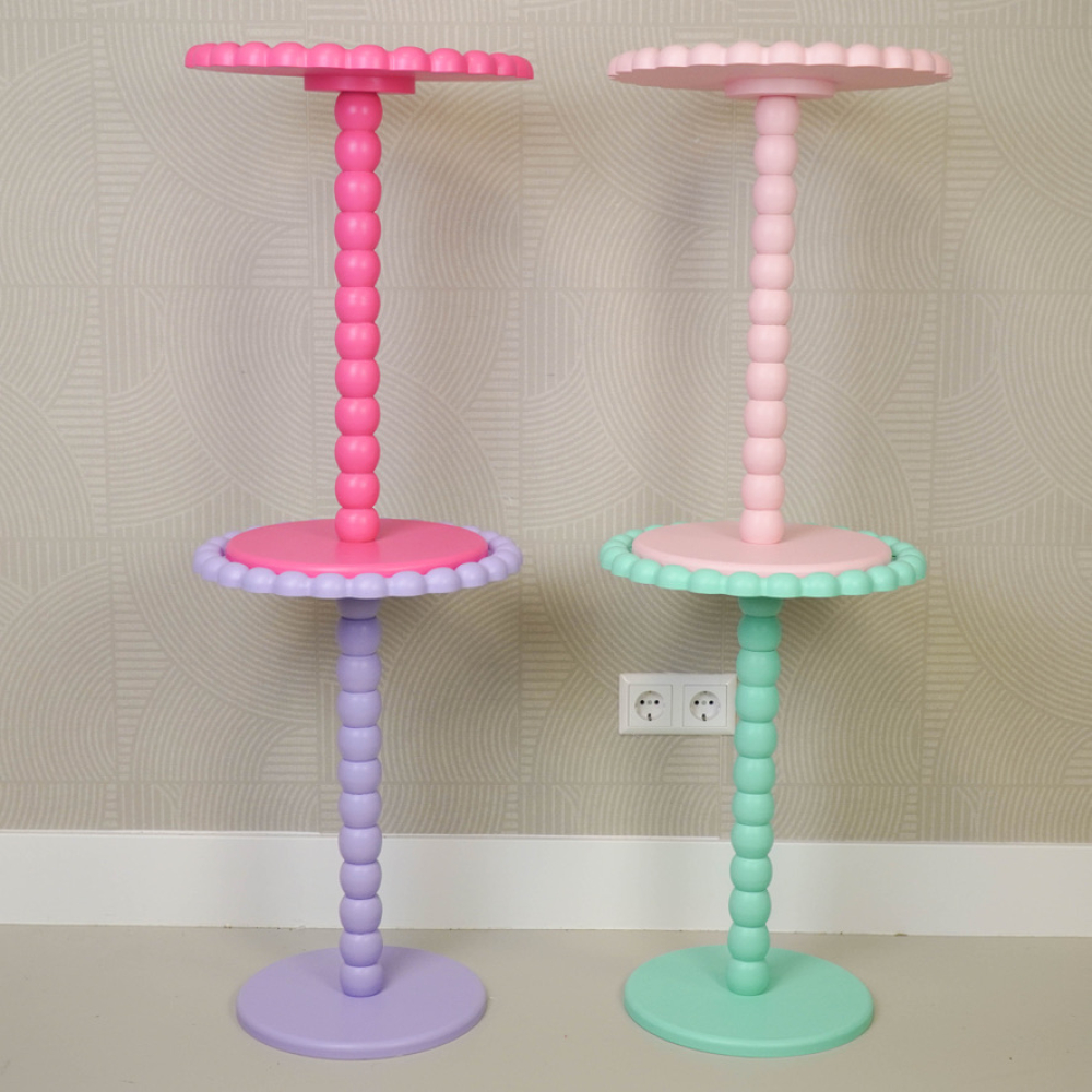 Deze ronde side table is perfect inzetbaar op verschillende plekken in huis en biedt veel flexibiliteit in gebruik. Plaats hem naast de bank als praktische bijzettafel voor je koffie, een boek of een mooie vaas, of gebruik hem naast een fauteuil om een gezellige zithoek te creëren. Door de hoogte is hij ook zeer geschikt als nachtkastje in de slaapkamer, waar hij zorgt voor een lichte en moderne uitstraling. In de hal of een lege hoek van de woonkamer kan deze tafel dienen als decoratief accent dat de ruimte direct meer sfeer geeft. De ronde vorm maakt hem makkelijk te combineren met andere meubels en zorgt voor een vloeiende, rustige uitstraling in je interieur. De light pink kleur werkt prachtig samen met neutrale tinten zoals wit, beige en grijs, maar kan ook juist een zacht contrast vormen in een strak interieur. Dit maakt de tafel ideaal voor mensen die graag variëren met styling en hun interieur af en toe een nieuwe twist geven.
