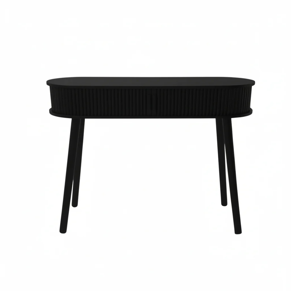 Deze sidetable is ontworpen om op verschillende manieren gebruikt te worden en past zich moeiteloos aan jouw woonruimte aan. In de hal fungeert de tafel perfect als stijlvolle binnenkomer, waar je ruimte hebt om decoratie, een lamp of persoonlijke accessoires te plaatsen. In de woonkamer is de sidetable ideaal achter de bank of tegen een lege wand, waar je hem kunt gebruiken om sfeer te creëren met vazen, boeken of kunstobjecten. Ook in de eetkamer of werkkamer komt deze tafel goed tot zijn recht als subtiele aanvulling op het interieur. Dankzij de smalle diepte neemt de tafel weinig ruimte in, wat hem bijzonder geschikt maakt voor kleinere woningen of smalle doorgangen. De zwarte afwerking zorgt voor een rustig geheel en maakt het eenvoudig om de tafel te combineren met andere meubels en kleuren. Je kunt kiezen voor een minimalistische styling met enkele accessoires, of juist voor een meer uitgesproken look met meerdere decoratieve items. Deze sidetable biedt de vrijheid om te spelen met styling, terwijl het meubel zelf altijd zorgt voor een stabiele en stijlvolle basis in huis.