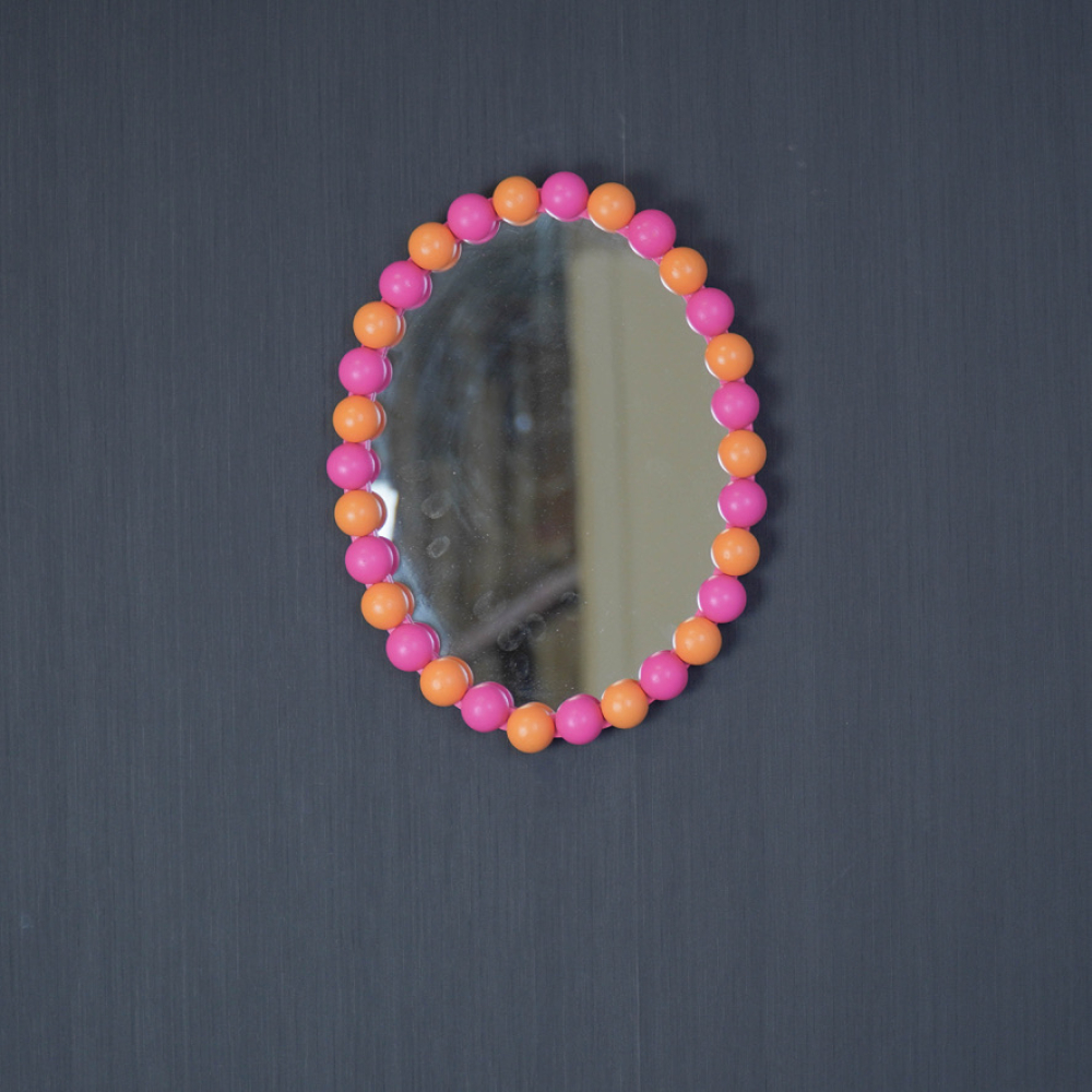 Spiegel Ovaal met balletjes Neon Roze met Oranje kopen?