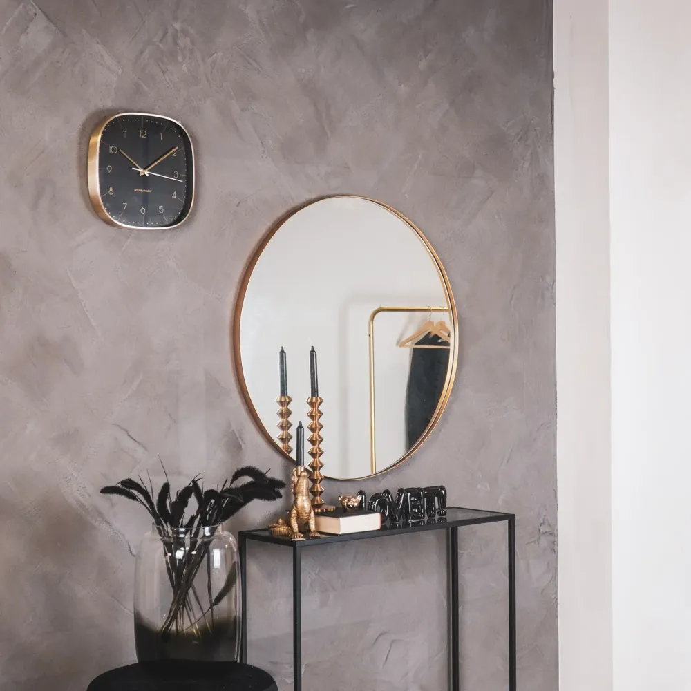 Met deze ronde metalen spiegel breng je niet alleen ronde vormen in jouw interieur, dankzij de spiegel crreëer je een gevoel van ruimte.