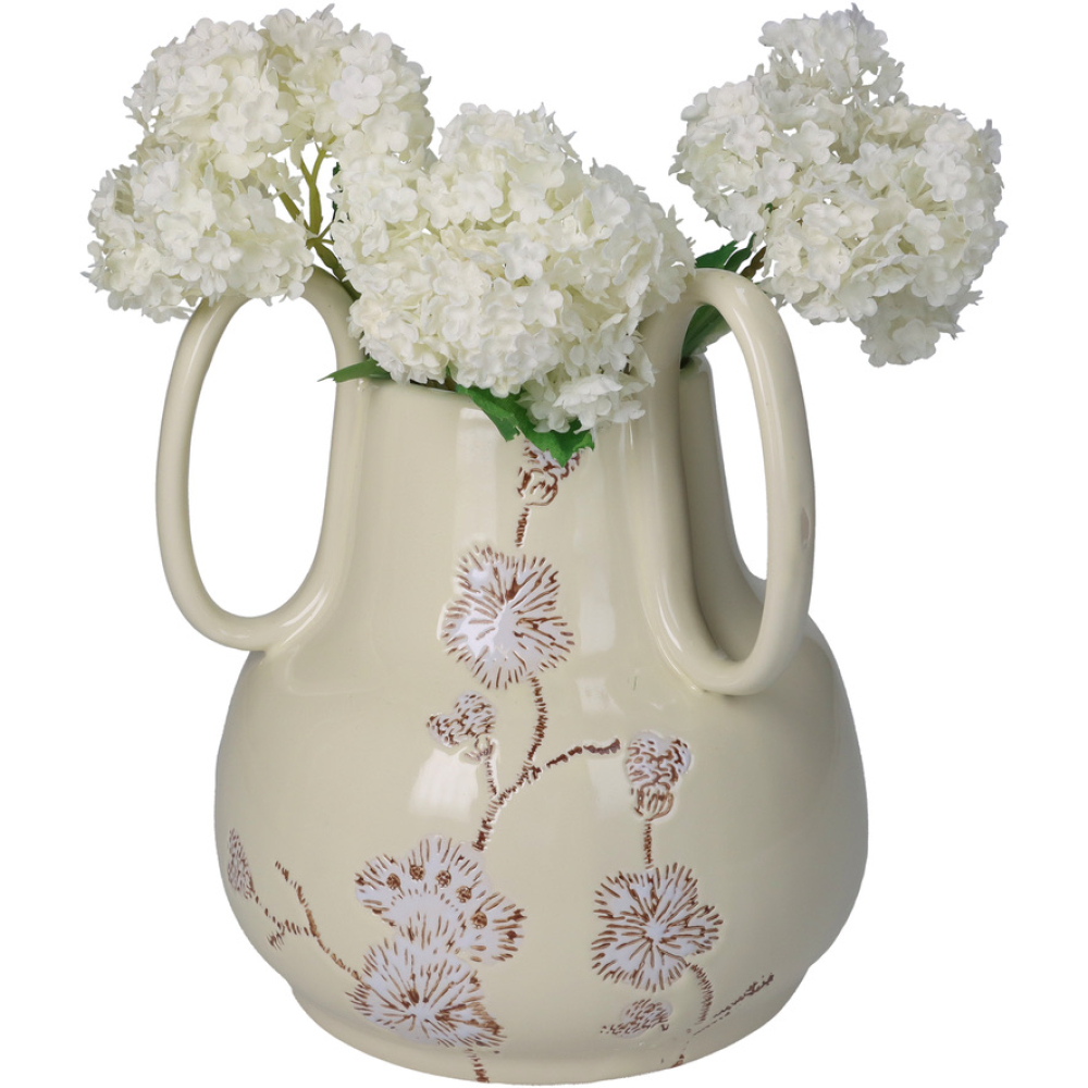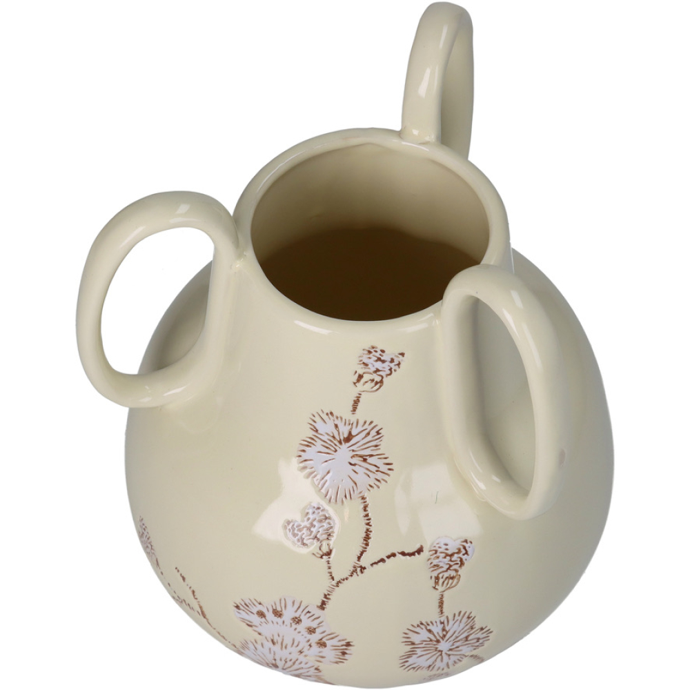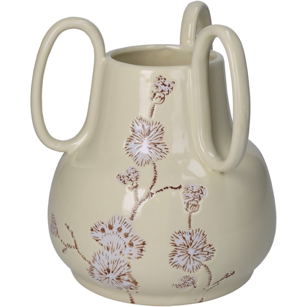 Prachtige vaas met 3 handvaten en subtiele lila bloesem.