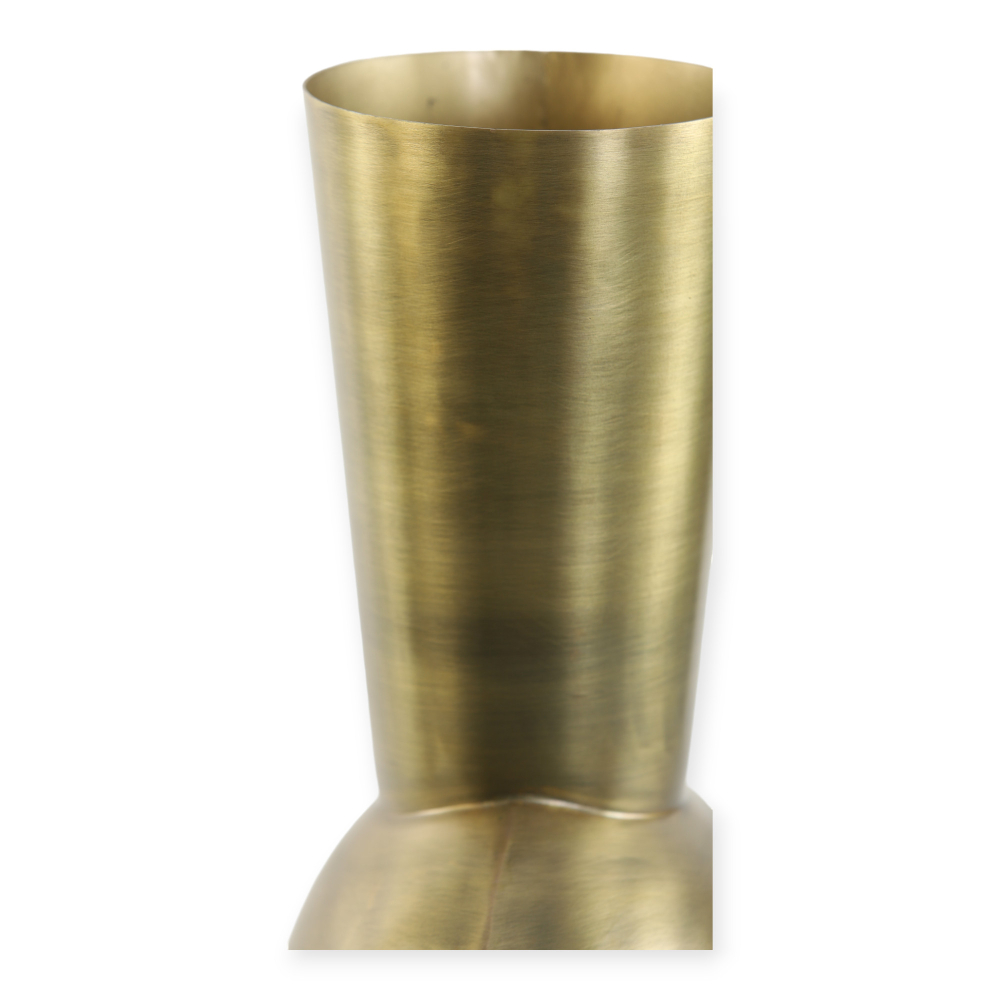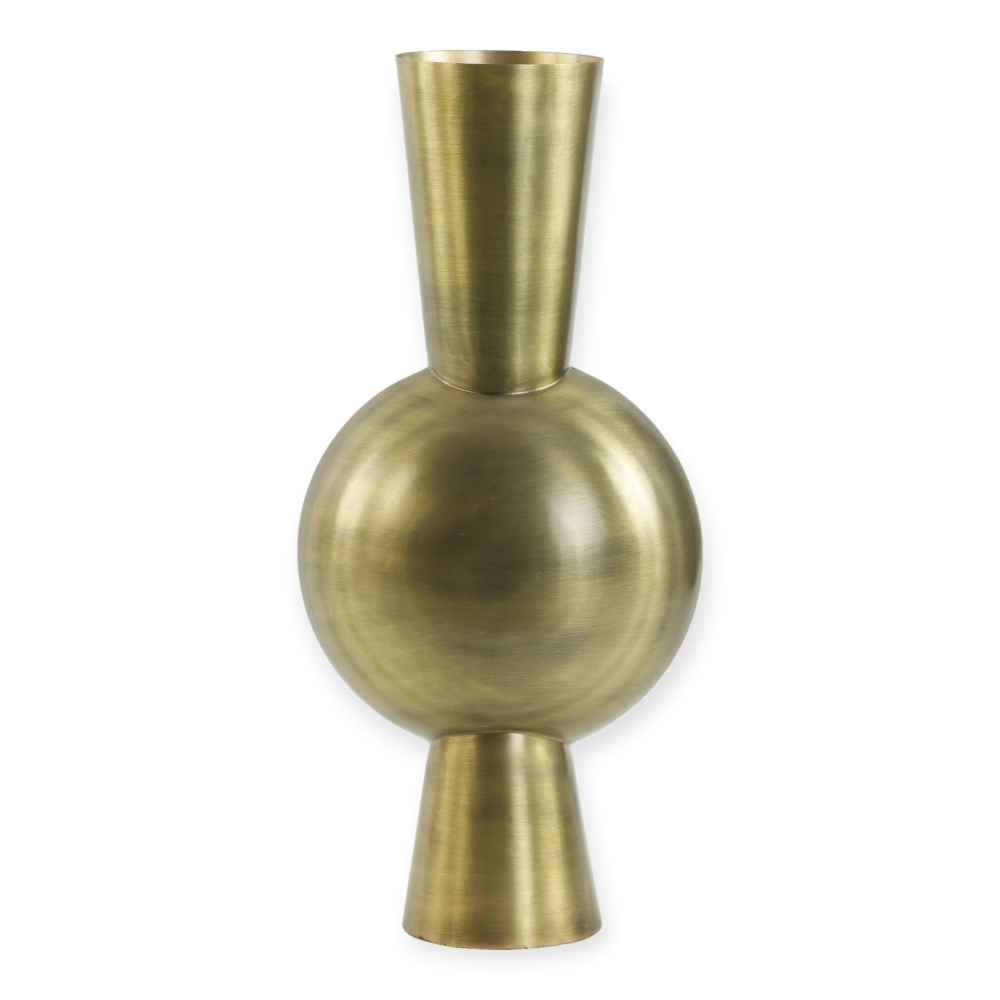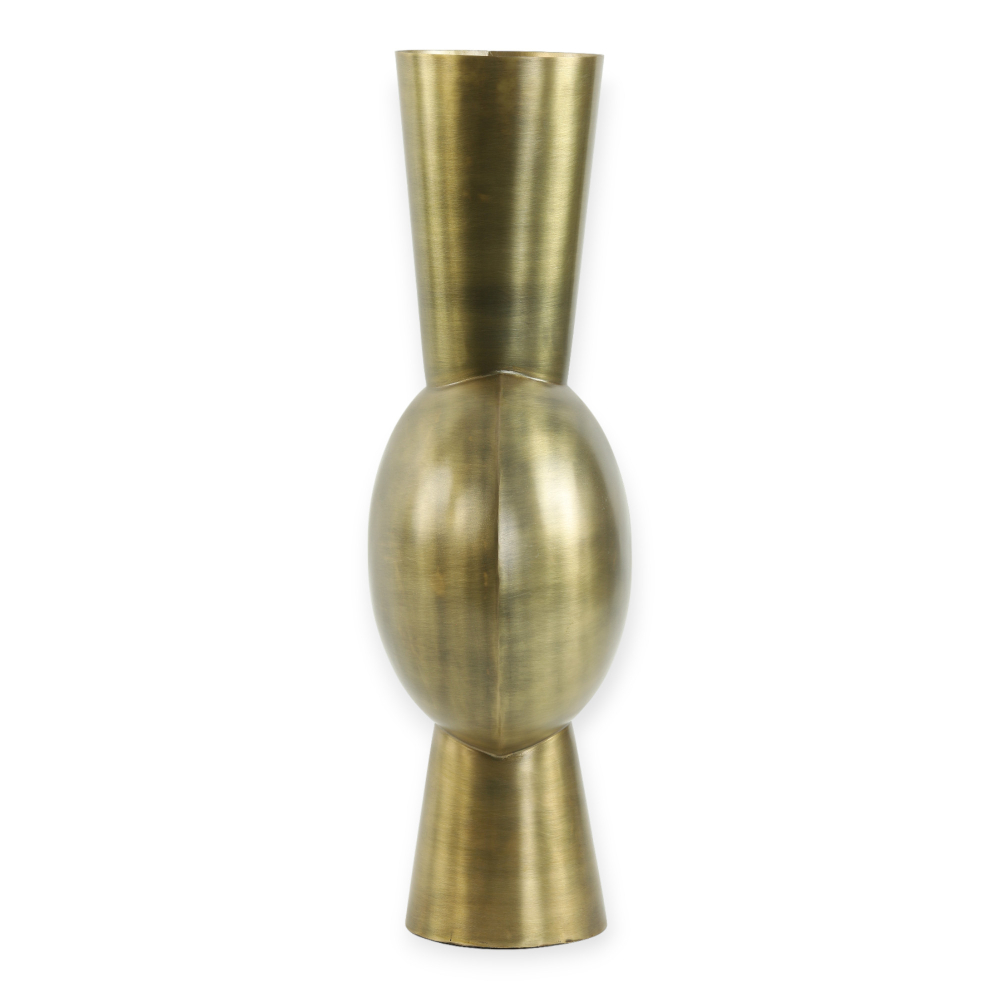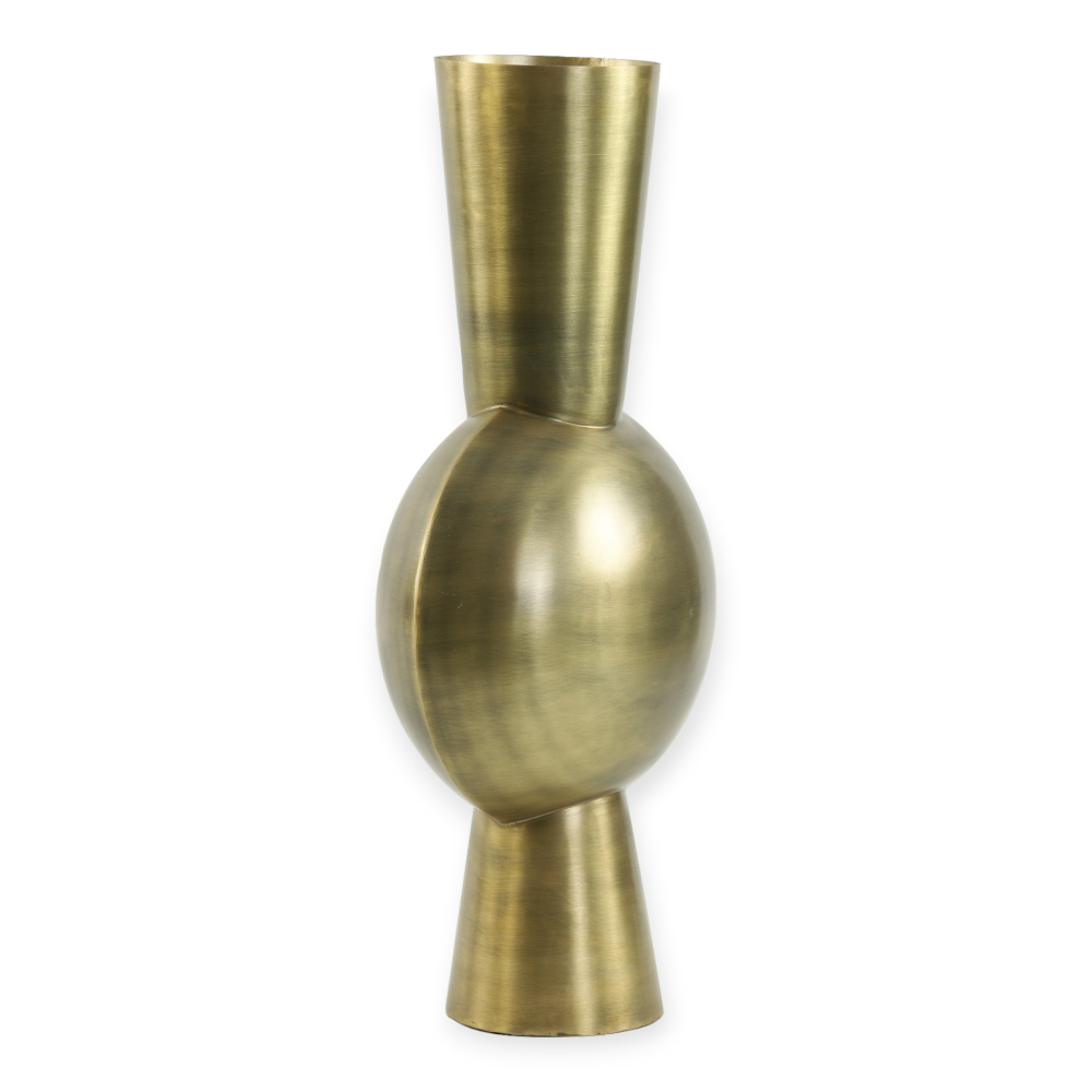 De Kavandu Vaas is een opvallende decoratieve vaas vervaardigd uit hoogwaardig metaal, met een imposante ovale vorm die een elegante en eigentijdse uitstraling biedt.