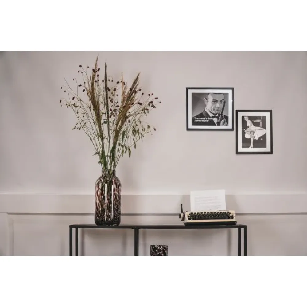 De vaas is mooi te combineren met zwarte en gouden accessoires.