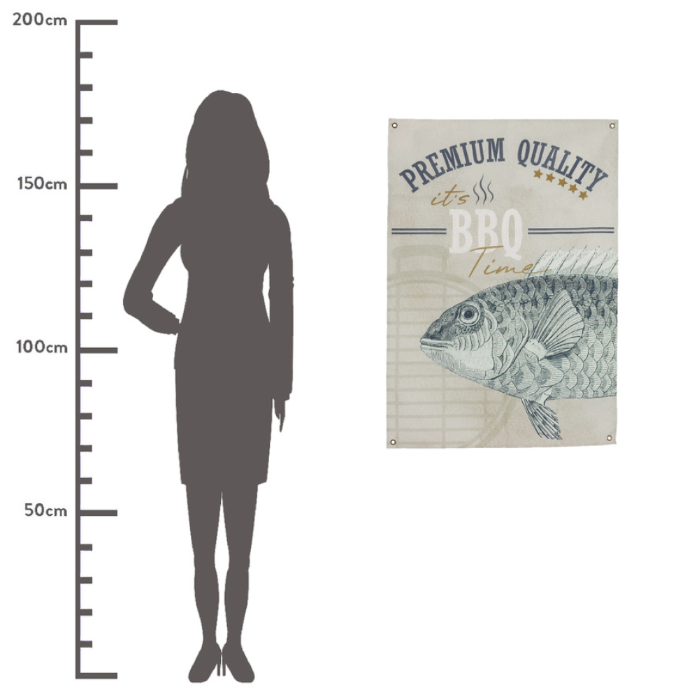 Ben je op zoek naar een stijlvolle en tegelijkertijd stoere toevoeging voor je interieur of buitenruimte? Dan is het wanddoek BBQ taupe met blauwe print 70x100cm precies wat je nodig hebt. Dit decoratieve wanddoek straalt gezelligheid en karakter uit, perfect om die speciale plek in huis of tuin nét dat beetje extra sfeer te geven. Het doek heeft een speelse en tegelijkertijd robuuste vibe, waardoor het niet alleen een decoratief object is, maar ook echt bijdraagt aan de sfeer van de ruimte. Of je nu je keuken, eetkamer of zelfs je veranda wilt opfleuren, dit wanddoek vormt een eyecatcher die nooit onopgemerkt blijft. Het compacte formaat maakt het bovendien makkelijk te combineren met andere decoratieve items.