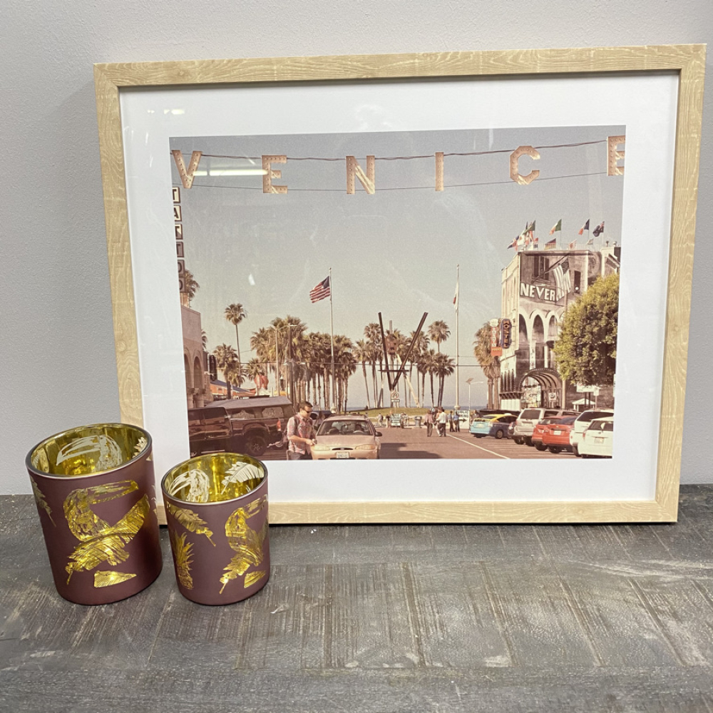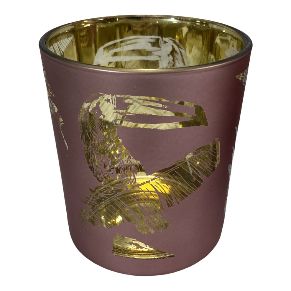 Roze Waxinelichthouder met Toekan afbeelding.